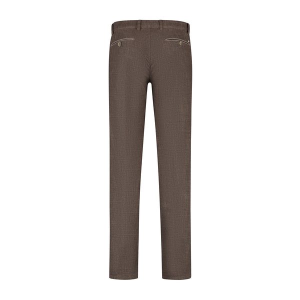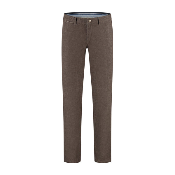Modern Chino: Het model 'Modern Chino’ is een comfortabele Chino met afsluitbare Gepaspeleerde zakken in een contrasterende kleur. De broek kenmerkt zich door de (schuine) steekzak. De Modern Chino zit extreem comfortabel door de stabiele elastische stretch-band aan de binnenzijde van de broek. De broek is voorzien van een rubberen hemdstopper zodat uw overhemd niet schuift. Ook verkrijgbaar in kwartmaten (buikmaten).
