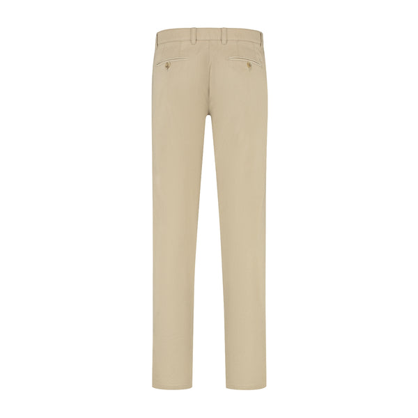 Luxury Comfort Chino: is een comfortabele chino met afsluitbare gepaspeleerde zakken in een contrasterende kleur. De broek kenmerkt zich door de (schuine) steekzak. De luxury comfort chino zit extreem comfortabel door de stabiele elastische stretch-band aan de binnenzijde van de broek. Ook verkrijgbaar in kwartmaten (buikmaten).