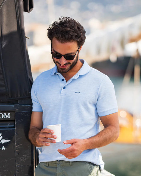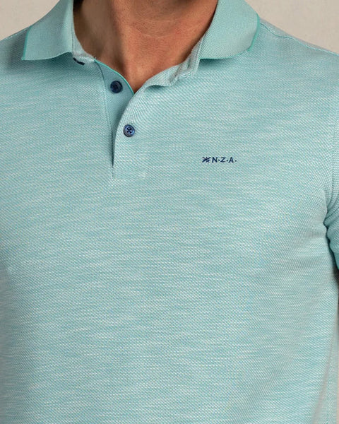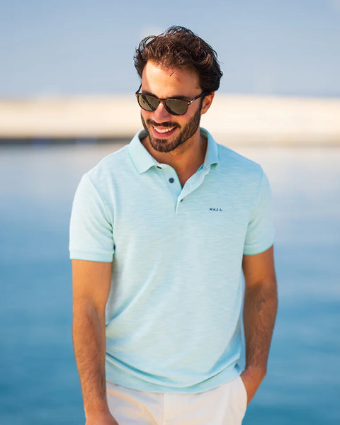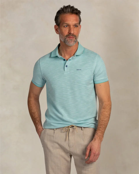 Uni polo korte mouw. De polo heeft een klassieke kraag met een ton sur ton randje op de kraag en mouwen. De knoopsluiting heeft knopen in een contrasterende kleur. Deze polo biedt een comfortabele en ademende ervaring in een regular fit die perfect aansluit.