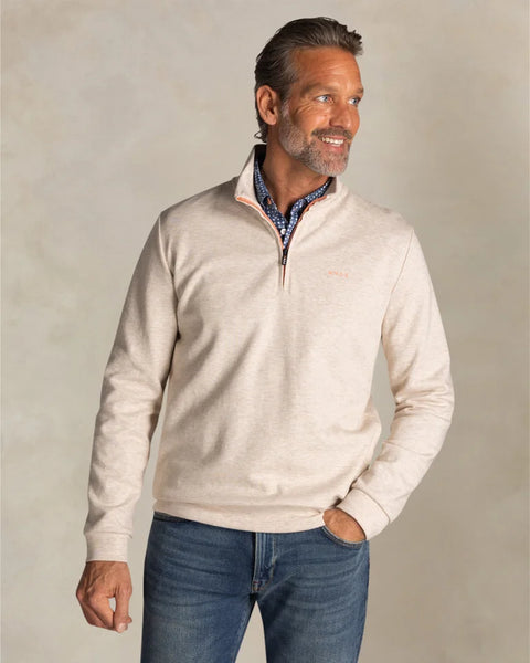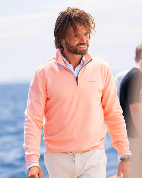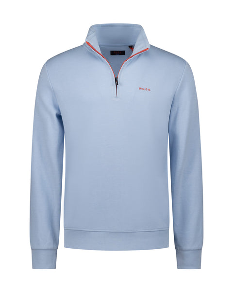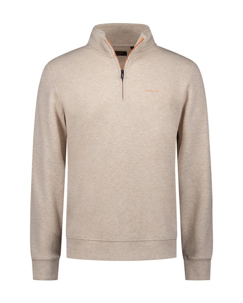 Dunne sweat pullover met halve rits. Deze NZA New Zealand Auckland sweater combineert comfort met stijl dankzij de half zip-kraag en het subtiele logo op de borst. De trui heeft lange mouwen en biedt een modern fit, perfect voor iedere casual gelegenheid. Gemaakt van 65% katoen en een mix met polyester, biedt deze sweater een ademend draagcomfort. Draag hem met een jeans voor een ontspannen weekendlook of combineer met een chino voor een iets nettere uitstraling.